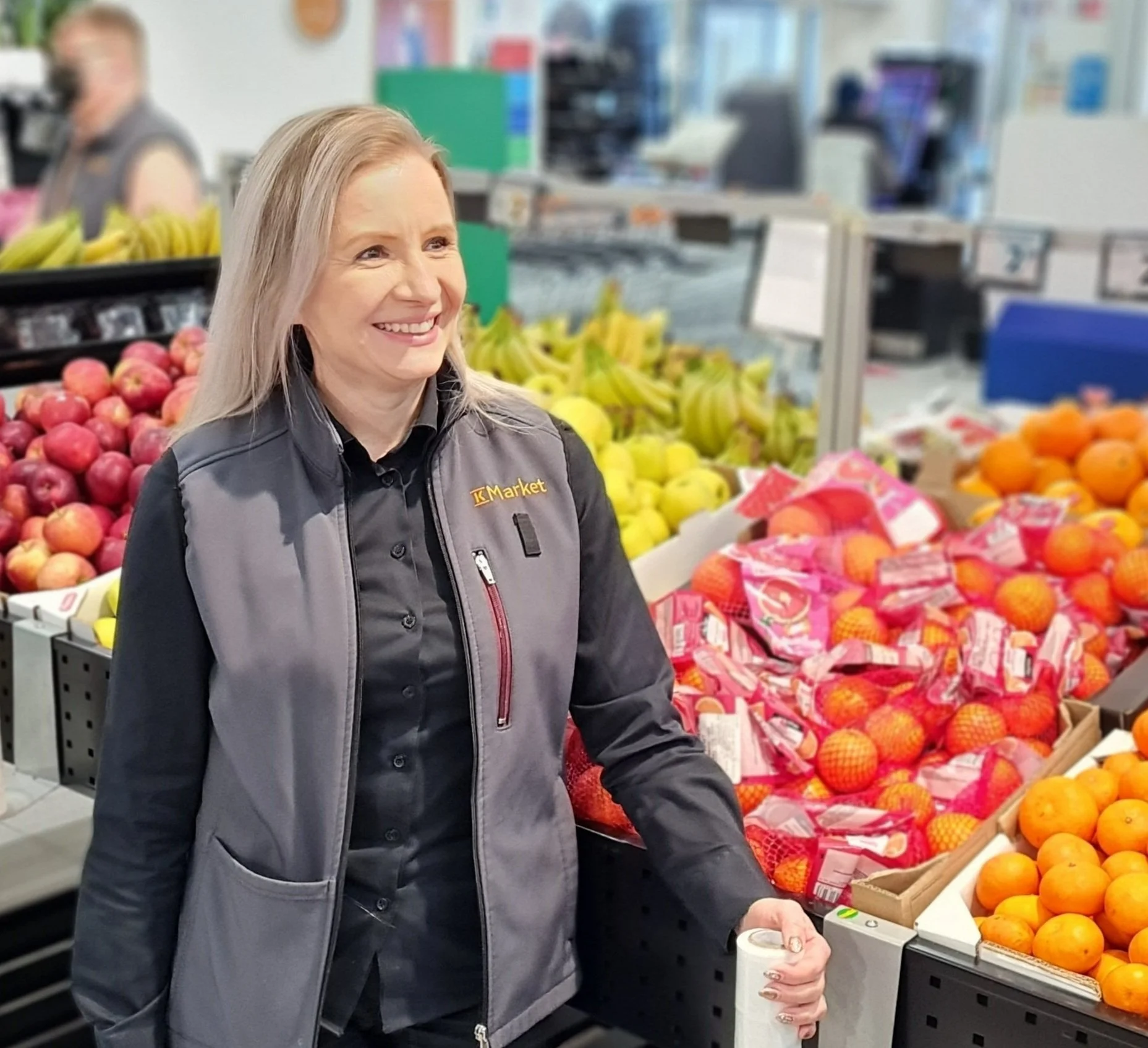 Nyt Anu on ollut kauppiaana 25 vuotta. Ruoan ja muiden päivittäistavaroiden lisäksi K-Hillamarketista voi ostaa vaatteita.
