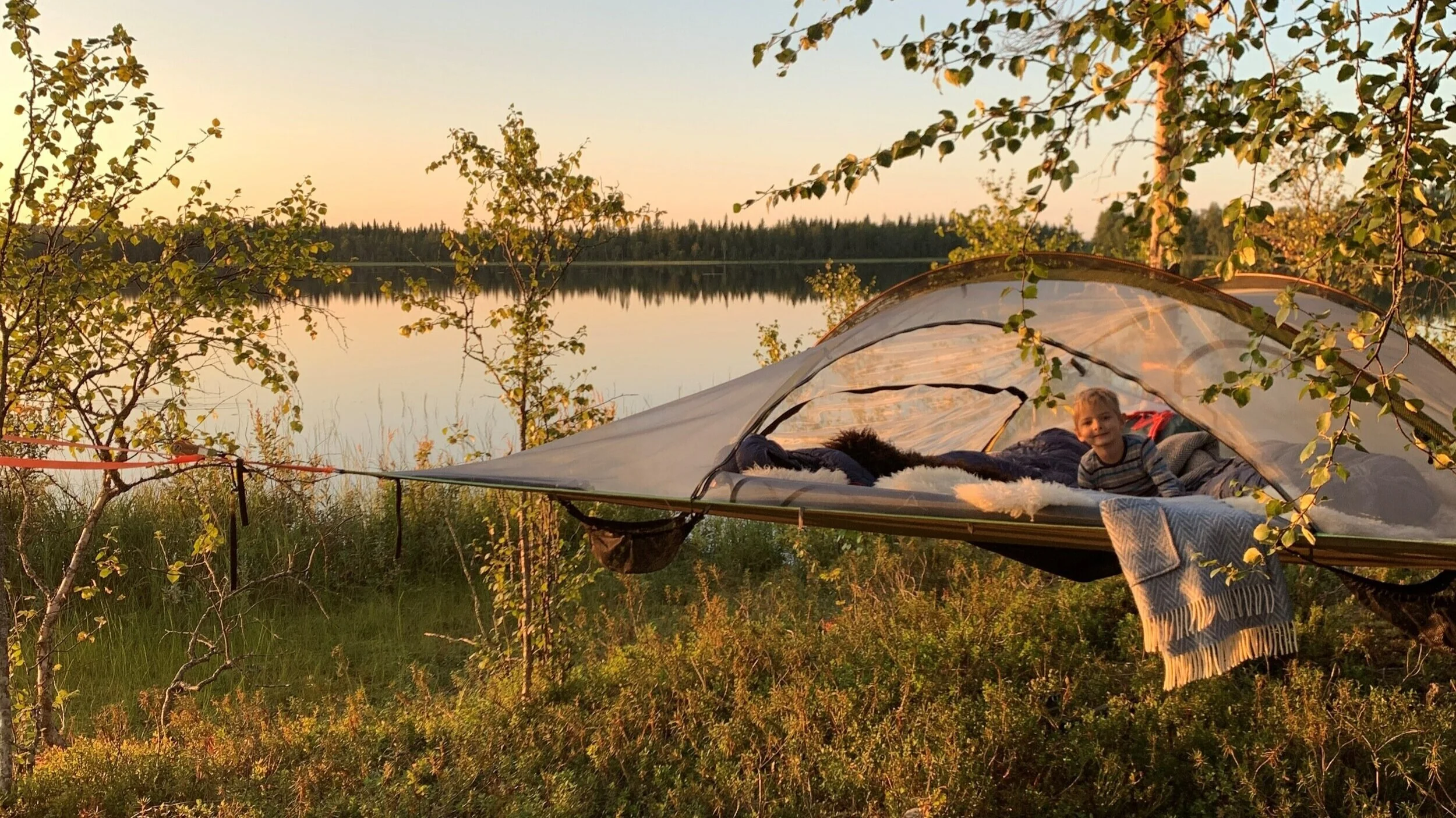 Metsä Kolossa voi yöpyä myös puuteltoissa, jotka viritetään puiden väliin.