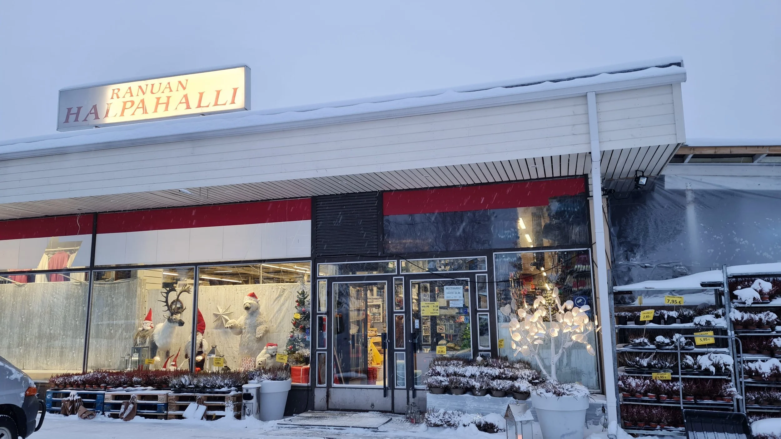 – Meillä oli Kemijärvellä joulumyymälä yhden marras-joulukuun ajan. Vaimo kulki sinne Ranualta. Rakennus piti lämmittää puulla ennen kaupan avaamista. Taivalkoskella meillä oli myymälä vuoden tai kaksi, mutta se oli niin huonossa paikassa, ettei siellä ollut toiminnan mahdollisuuksia.