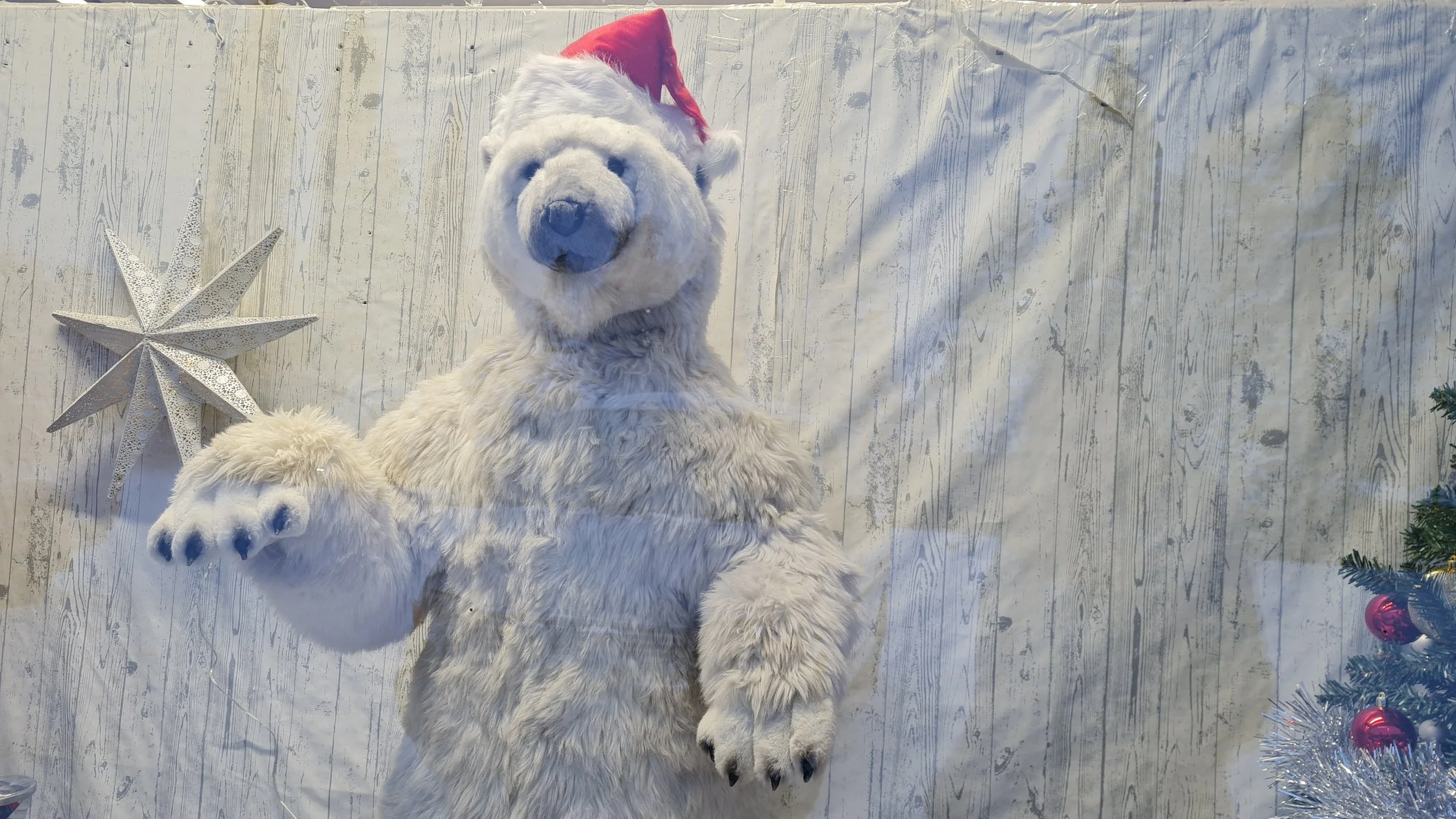 Ranuan maskotti liikkeen ikkunassa.