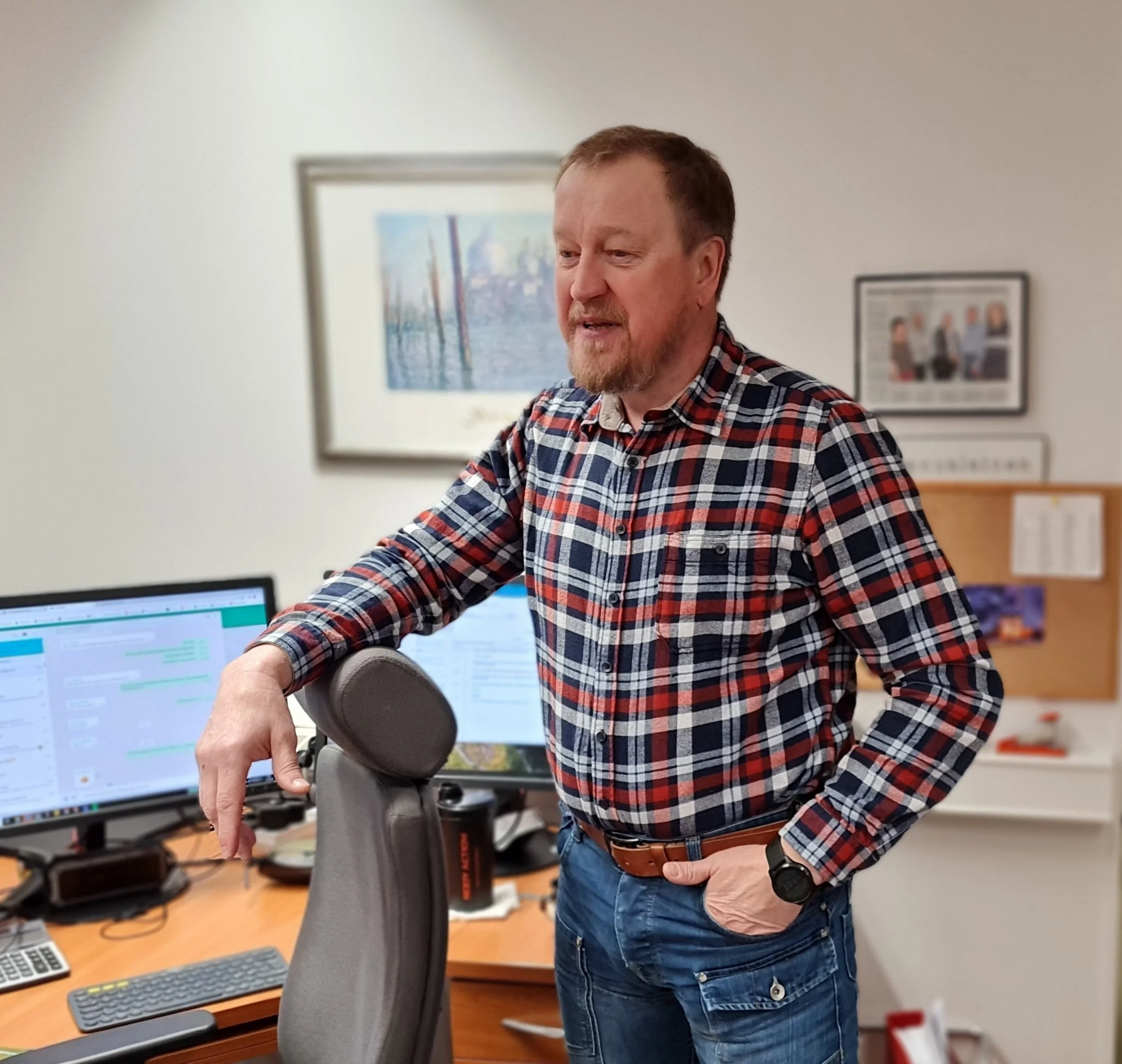 Jari Ranua on ollut Kuriirissa vuodesta 1987, ensin ilmoitusvalmistajana. Nyt hän tekee toimitusjohtajan töitä, striimaa verkkolähetyksiä ja myy muun muassa ilmoituksia,