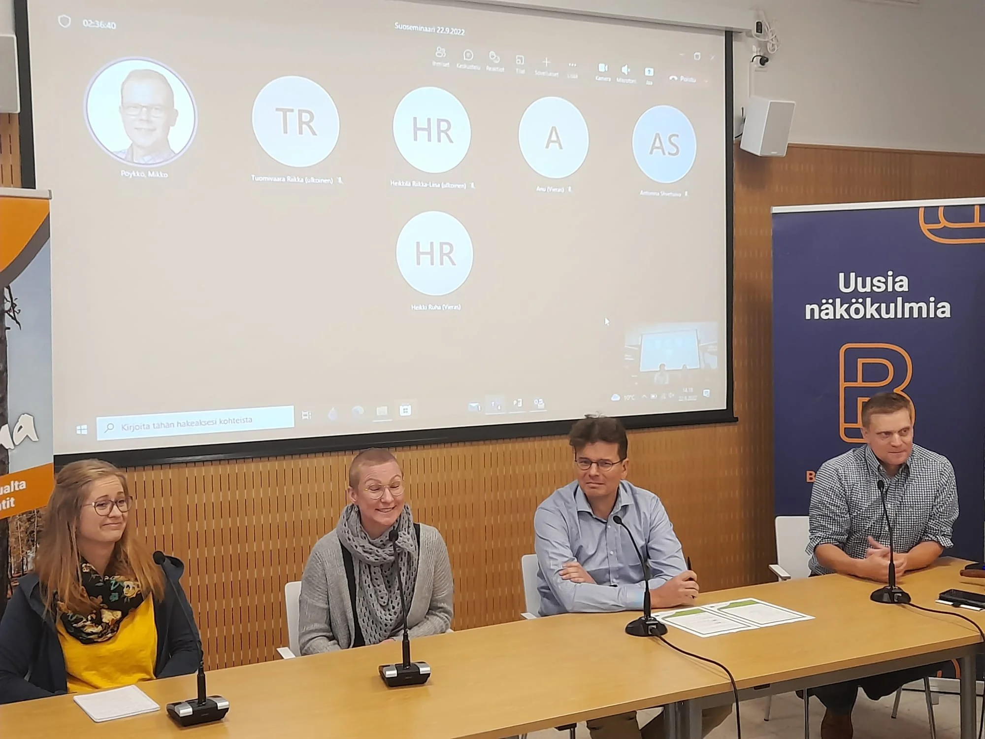 Seminaari huipentui paneeliin, jossa mukana olivat Heikki Ruha, Juha Ovaskainen, Arctic Warriors Oy:n yrittäjä Katja Misinkangas, erikoistutkija Rainer Peltola Luonnonvarakeskuksesta ja toiminnanjohtaja Marjut Petäjäjärvi Peräpohjolan Leader ry:stä.