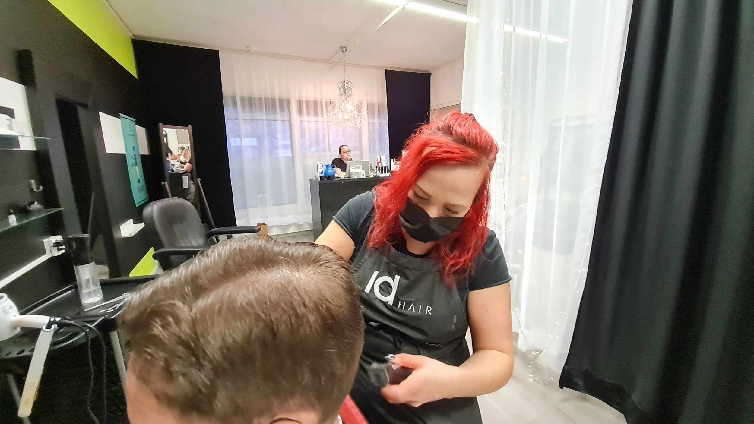 Yrittäjä omistaa liiketilansa Keskustiellä. Saman katon alla työskentelee kaksoissisko Tuija Saukko parturi-kampaajana.