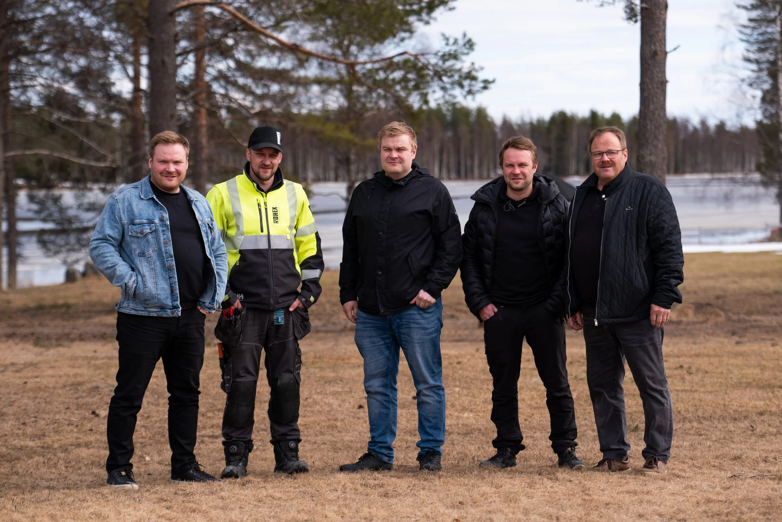 Hankkeen puuhamiehet eli Markus Ranua, Rohex Oy:n toimitusjohtaja Juhana Heikkilä, Matias Ranua, Miikka Ranua ja Veijo Ranua. Kuva: Jari Romppainen